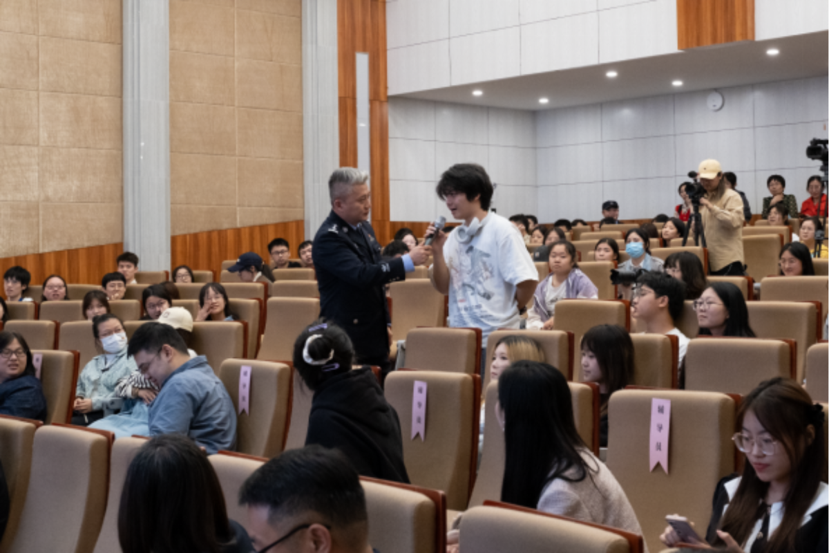 庭审结束后,童家桥派出所教导员、红岩反诈宣防劝阻卫士团成员粟田结合真实案例,为学生们上了一堂生动形象的反诈法治课。粟田从人性弱点出发,总结了校园电信诈骗的典型类型和手段,提醒师生时刻保持警惕,远离诈骗陷阱。现场还设置了有奖问答环节,师生积极踊跃参与互动,起到了良好的宣教效果。