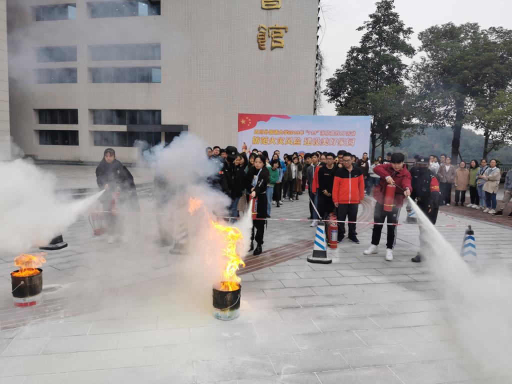 11月15日,在学校保卫处、图书馆和后勤管理处的精心组织下,图书馆工作人员、龙湖物业公司员工和学生楼长、楼层长共约300人,参加了我校2019年“119”消防宣传月系列活动。