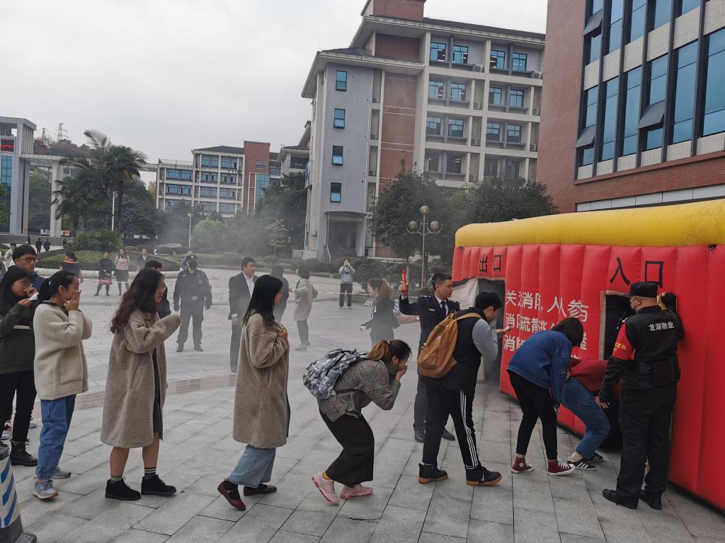 讲座结束前,姚教官向大家强调了模拟火场逃生屋疏散演练的训练要点和注意事项。随后所有人员在疏散引导员的指挥下,有序地从逃生屋入口猫腰捂鼻进入,迅速安全地从逃生屋疏散出口撤离到指定位置。