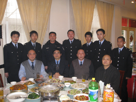 2008年2月6日除夕佳节,李克勇校长亲临保卫处,对在春节期间坚守岗位的保卫干部和校卫队员表示了亲切的慰问,并给优秀校卫队员颁奖,与大家共进团年午餐。李校长就春节期间的安保工作作了重要指示,鼓励大家认真工作,确保在校师生员工度过一个平安祥和的春节。这是李校长连续三年来与保卫处校卫队员一起过春节。