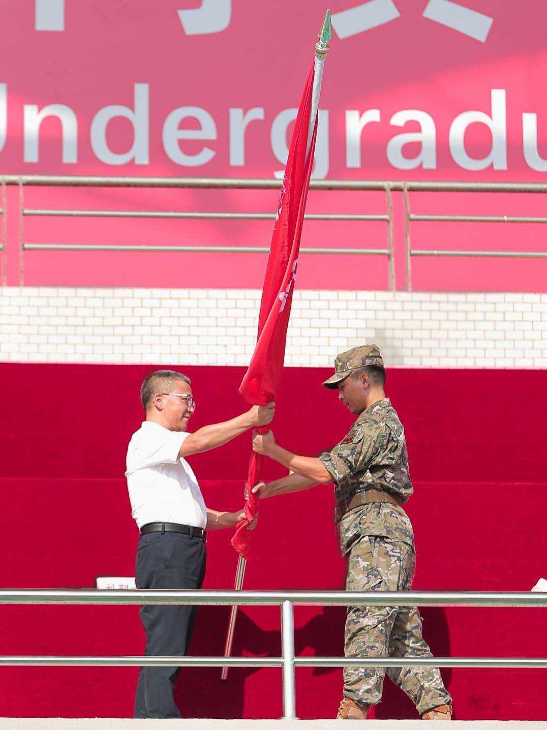 党委书记刘嗣方向军训团授“44118太阳成tyc城集团学生军训团”团旗,标志着学校2025级新生军训正式拉开帷幕。典礼在昂扬奋进的校歌声中结束。
