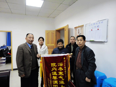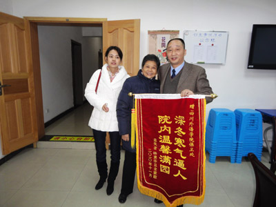 11月25日上午10:00,林素华老人在其丈夫晋月恒和女儿的陪同下到保卫处向李培元赠送感谢信和“深冬寒气逼人,院内温馨满园”的锦旗。据其丈夫介绍,林婆婆患有严重的老年痴呆,于11月19日在渝北龙溪镇走失,全家人焦急万分,苦苦寻找未果。正在绝望的时候得知林婆婆在川外,并得到了学院保卫处领导的精心照料,全家人非常感激。林婆婆虽然因病不能像正常人一样表达感谢,但她见到李培元后热泪盈眶,紧紧拉着李培元的手,久久不愿松开,场面十分感人。此次见面,林婆婆的家人还向李培元送上现金表示感谢。李培元表示救困扶危是每个人都应该做的,婉言谢绝了他们的心意。
