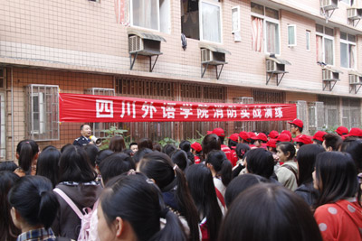 为全面加强学校消防工作“四个能力”建设,增强师生消防安全意识,进一步提高师生防范和应对消防安全事故的能力,11月10日下午,保卫处联合后勤集团在东区兰苑1舍开展了2011年“四川外语学院消防实战演练”。学校相关部门消防安全负责人、大学生消防志愿者、各宿舍楼长等共150余人参加了消防演练。消防演练由保卫处副处长李培元指挥,副校长陈志彪到场观看演练并指导工作,重庆市“五进”消防安全知识咨询中心主任杨果应邀到场为师生培训消防技能。