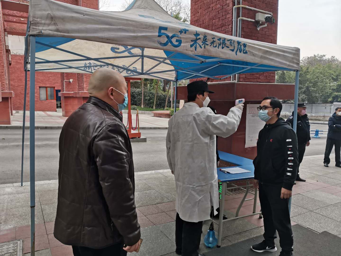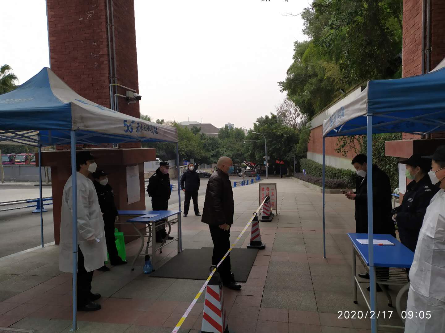 从2月17日起,学校升级防控措施,保卫处将1号门分区分道管理,进出人员和取物人员分道而行。严格限制人员进出,每户发一证,每户每两天派一人外出购买生活必需品。每日上午8时—晚上6时,保卫处职工轮班值守1号门,协同物业保安严格管控进出通道,检查每一位出入人员。此外,保卫处十分重视龙湖物业一线执勤队员的安全防护,积极解决口罩、测温仪、消毒剂等防疫物资。