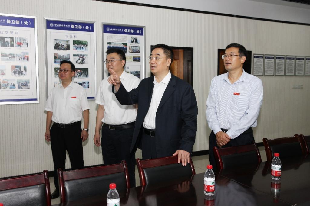 930日上午,市委教育工委书记、教委主任刘宴兵,市教委安稳办主任肖东一行来我校检查节前安全稳定工作,并慰问我校师生。我校党委书记邹渝、校长董洪川、副校长祝朝伟及党政办、党委学工部、党委保卫部、国际合作与交流处和后勤基建管理处相关负责人陪同走访检查。