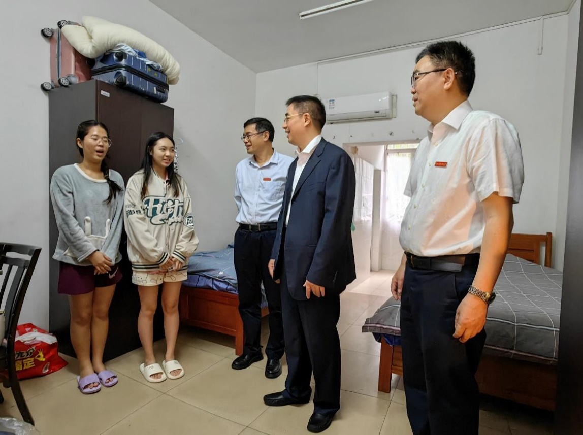 刘宴兵主任一行在我校领导和职能部门负责人陪同下前往学校留学生公寓,慰问了老挝和泰国学生;随后检查了校园环境,来到保卫处监控中心,了解节日期间学校安全保卫工作情况。所到之处,刘宴兵认真听取了我校领导和职能部门负责人汇报,对我校的安全管理工作予以充分肯定。他强调,学校要高度重视,进一步做好节假日期间的安全管理工作;要做好隐患排查,营造节日期间平安、和谐的校园环境。