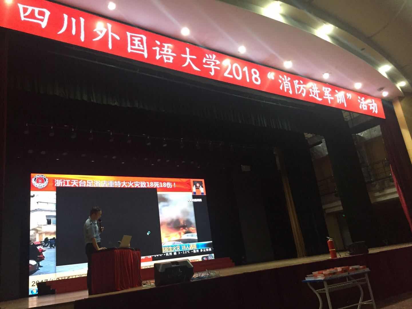 整场培训深入浅出,形象生动,得到了与会学生的热烈响应。此次消防进军训活动的成功开展,进一步提高了川外大一新生的消防安全意识和自防、自救能力,收到了良好的消防安全教育效果。